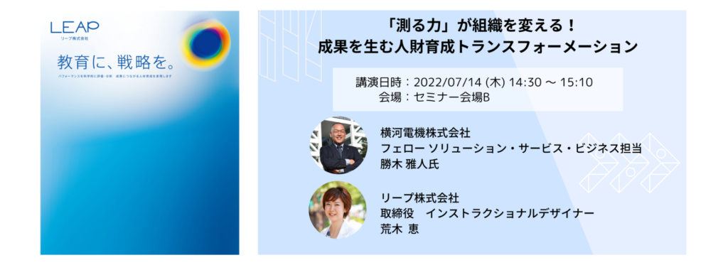 2022年7月13日(水)~15日(金)にかけて、東京国際フォーラムで開催される「ヒューマンキャピタル2022/ラーニングイノベーション2022」にリープ株式会社が出展いたします。3日間のブース出展と、協賛セミナーにも登壇いたします。